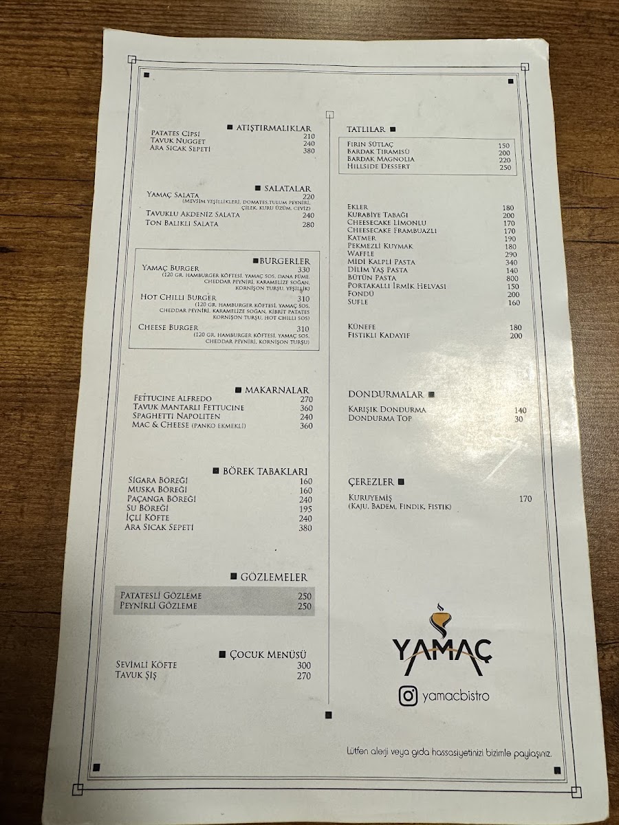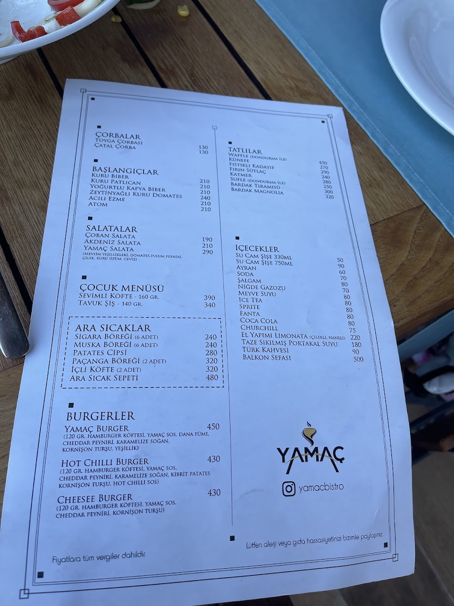 While the staff may benefit from a touch more professionalism, their friendliness shines, making Yamac Bistro a must-visit location for anyone seeking delicious food combined with an unforgettable view and a relaxing vibe.